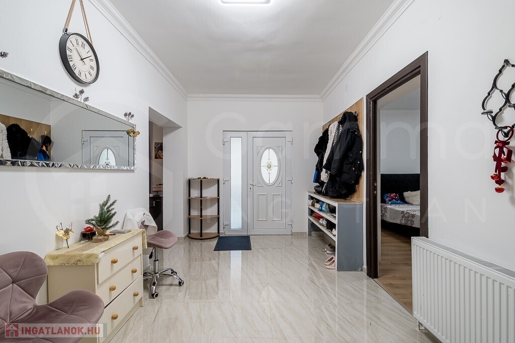 - Belső burkolatok: Frissen festett falak, a szobákban új laminált padló, a többi helyiségben járólap található. A vizesblokkok részben csempézettek.